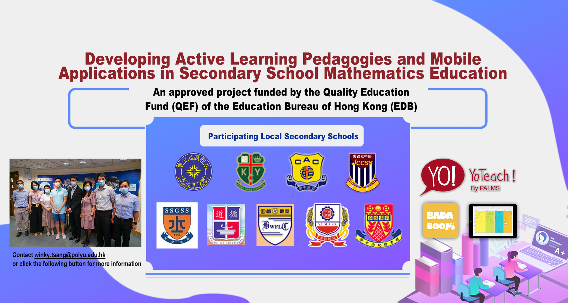 We are happy to announce that we have been approved by the Education Bureau of Hong Kong (EDB ) to launch a Quality Education Fund (QEF) Project entitled “Developing Active Learning Pedagogies and Mobile Applications in Secondary School Mathematics Education“.